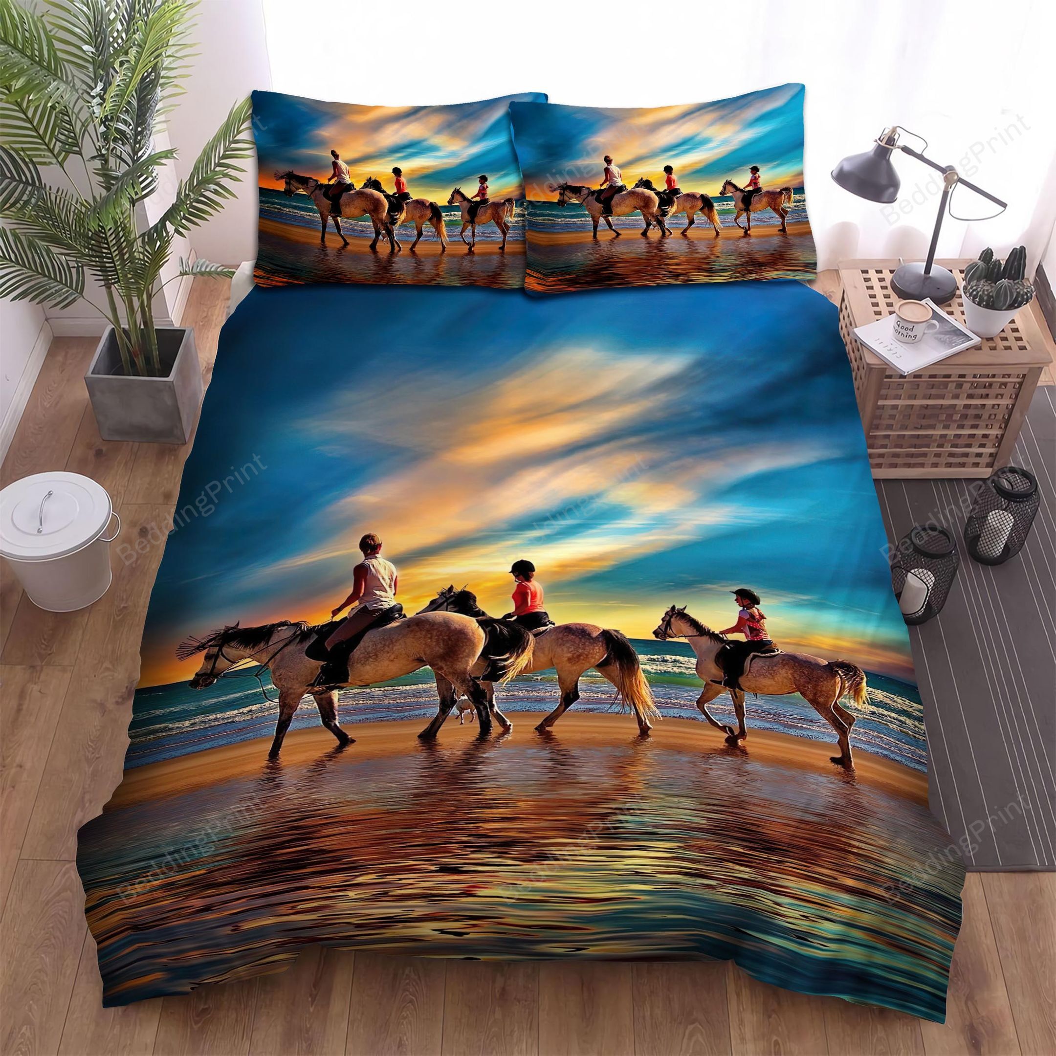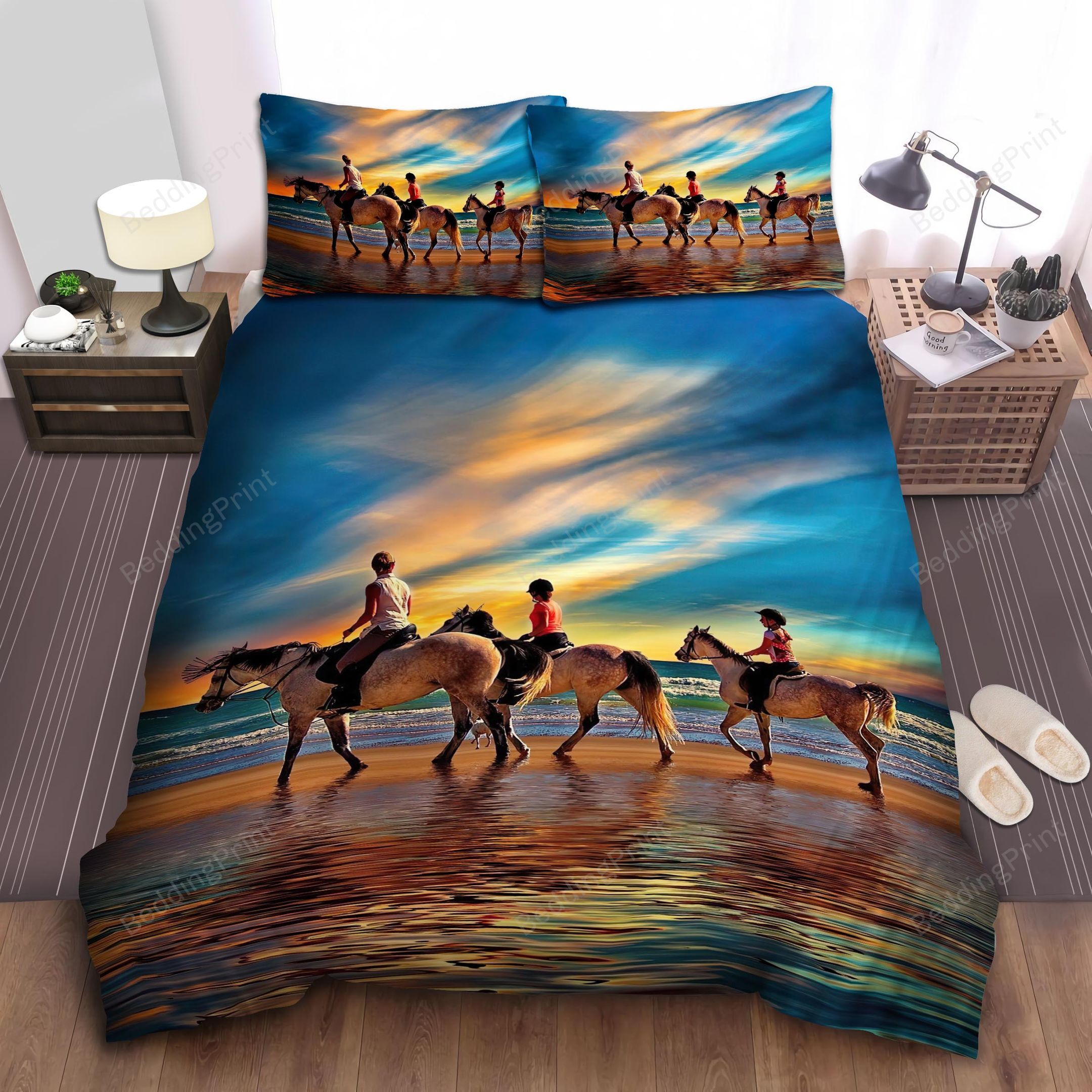 Horse Riding Three Horses Beach Bed Sheets Spread Comforter Duvet Cover Bedding Sets
